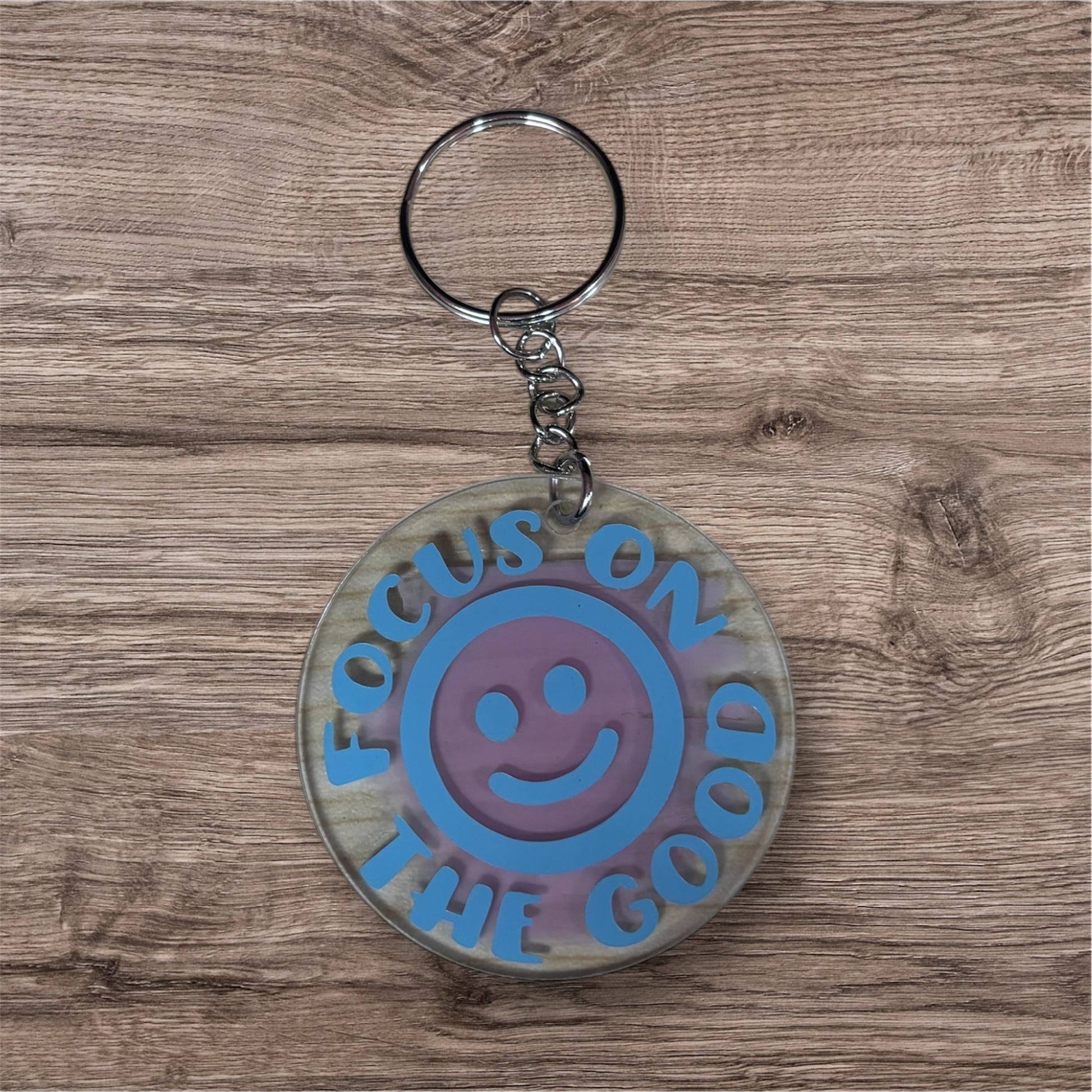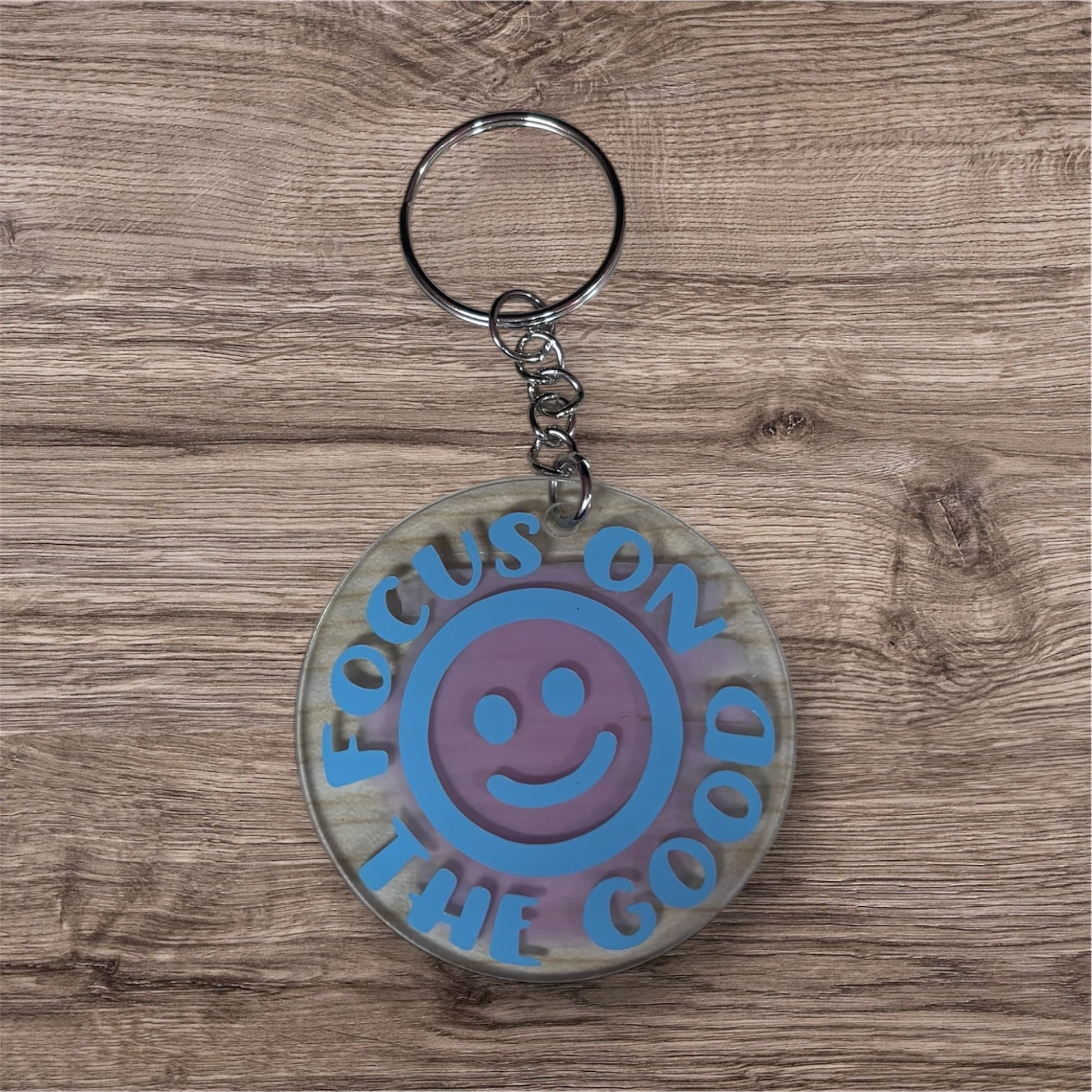 Add a touch of positivity to your everyday routine with our one-of-a-kind, handmade keychain. Remind yourself to focus on the good with this unique accessory.